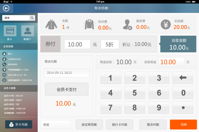 1) 有效简化了加盟店的收银过程,工厂洗衣更加流程化和标准化。